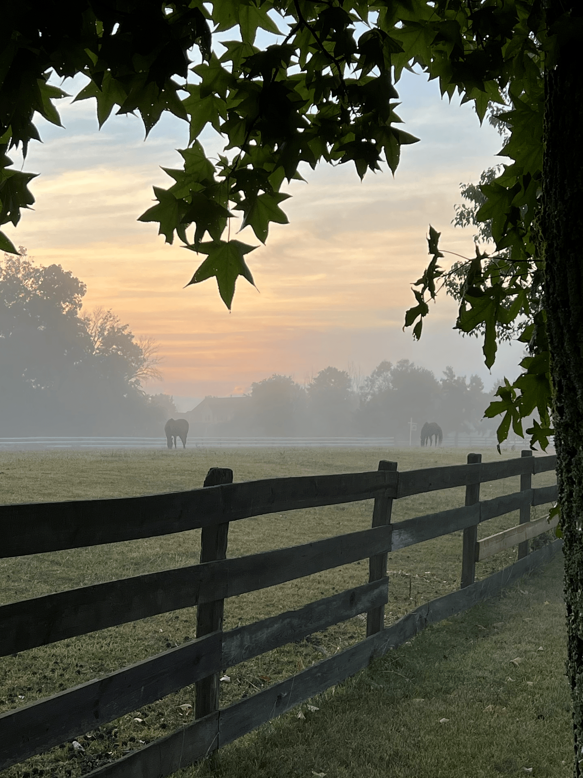 Sari DeCesare- Horses Graze on a Foggy Morning in Hopewell Township