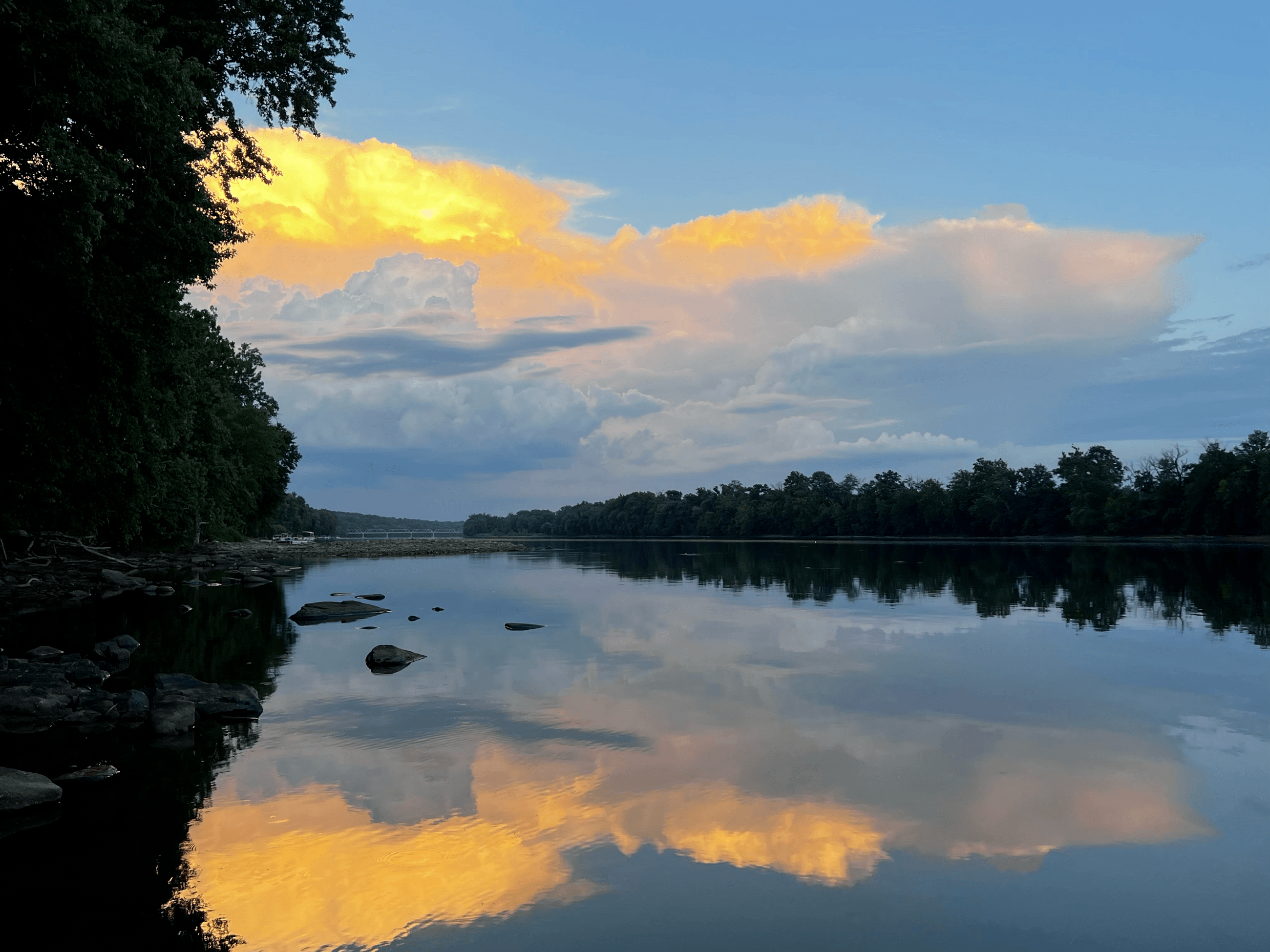 - 8 Jeanne Imbrigiotta- sky with clouds reflecting sunlight with reflection on river
