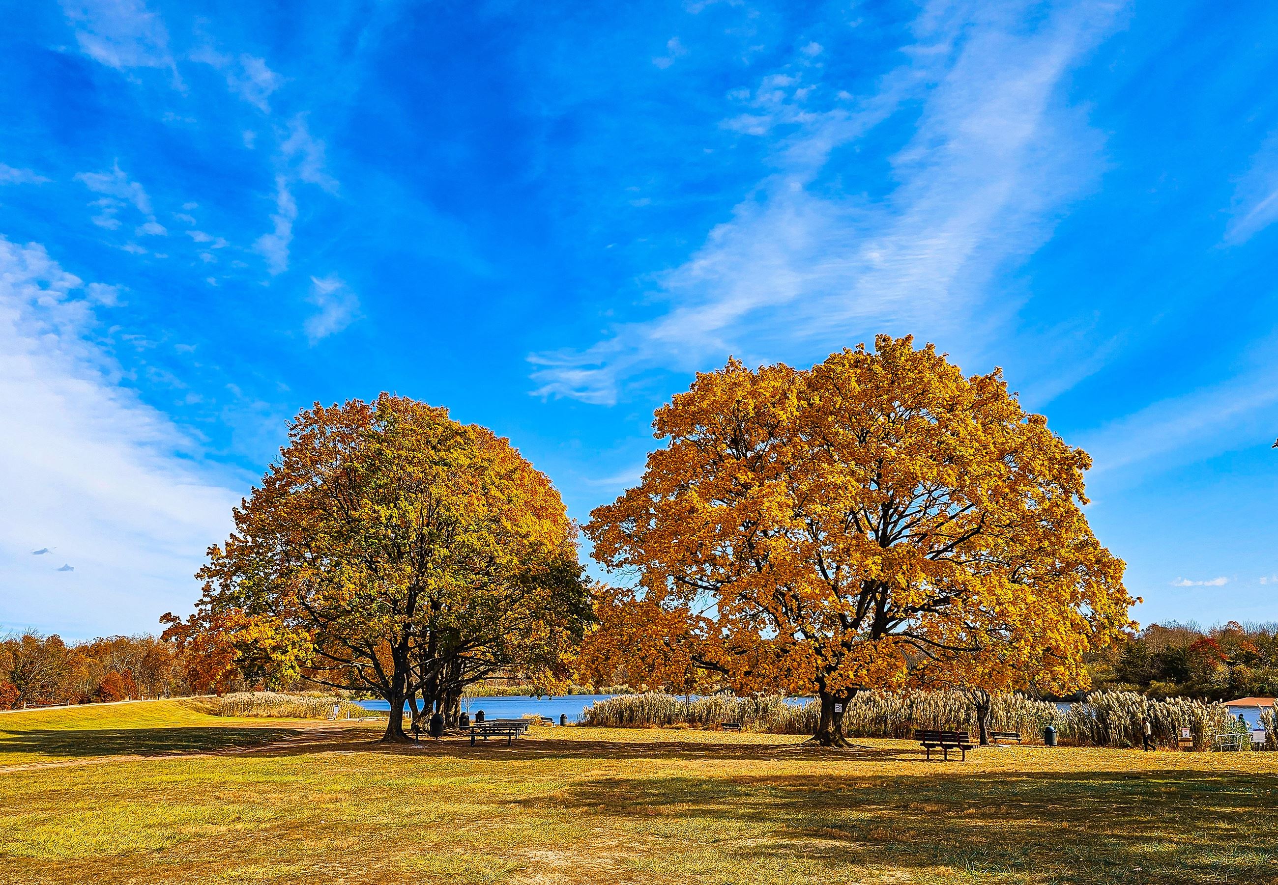 - 11 Nirmal Jain- 2 giant fall trees in a field with bright sky with clouds